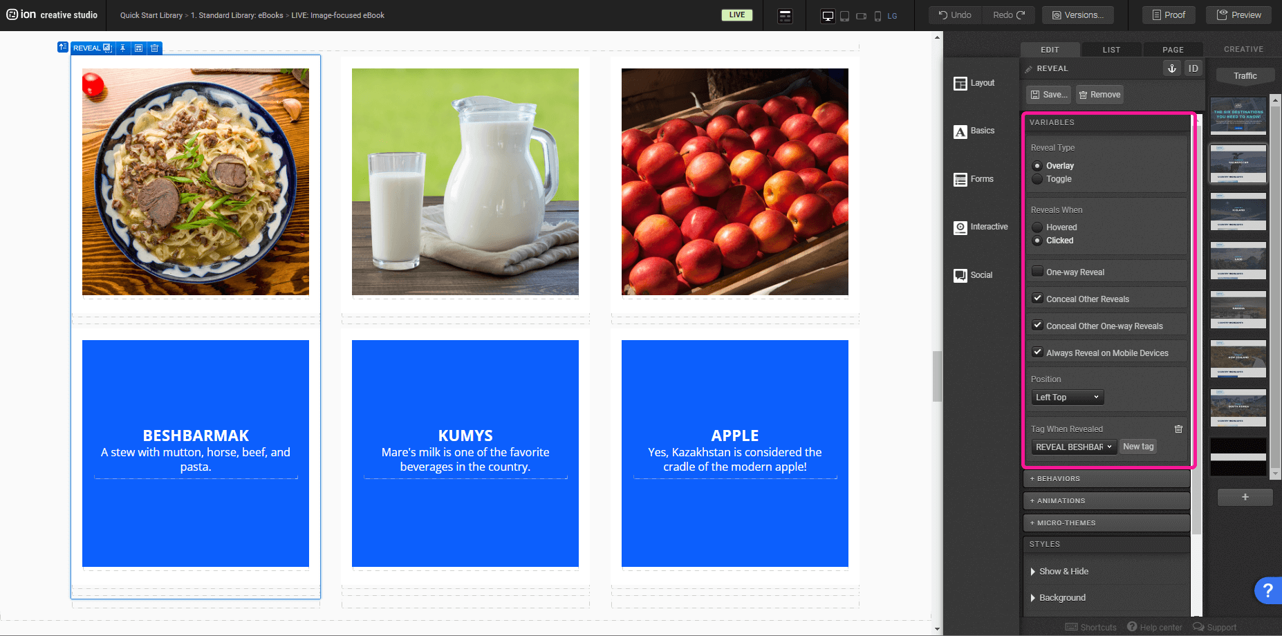 With the Reveal selected, you’ll be able to edit its variables, under the Edit tab, Variables section.
