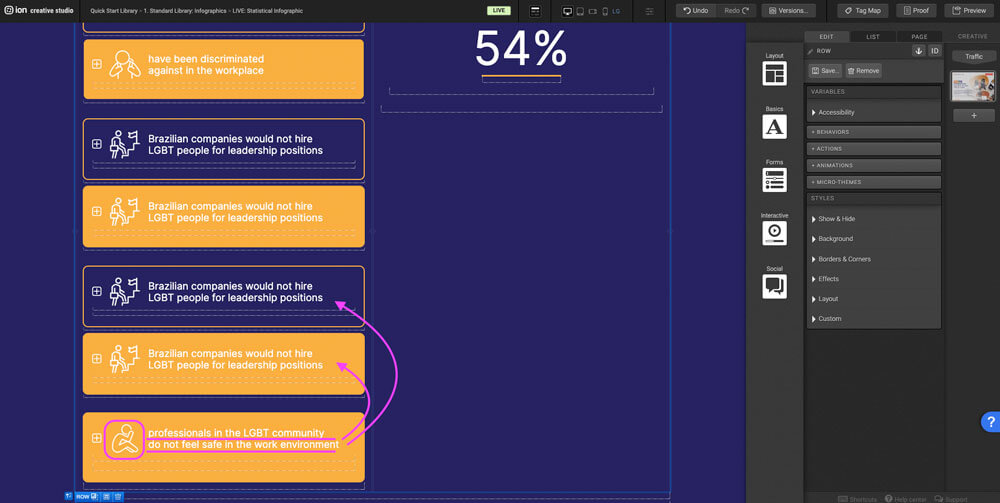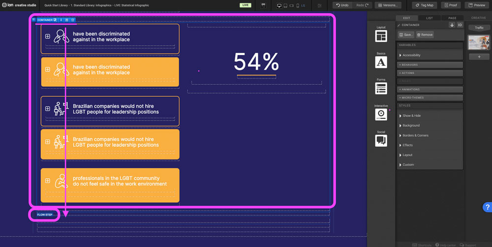 This statistical infographic is an engaging display of information using many interactive features to break down content into simple visual displays that make key points easy to understand. Visitors are welcomed with moving text animation, full page hero background, and an anchor CTA leading to additional content below. Navigating through the experience, visitors will notice animated content and figures, as well as reveals when hovering or clicking through key figures that display additional facts. This infographic uses bold colors, imagery, icons, and stats to encourage visitors to learn more about the experience.